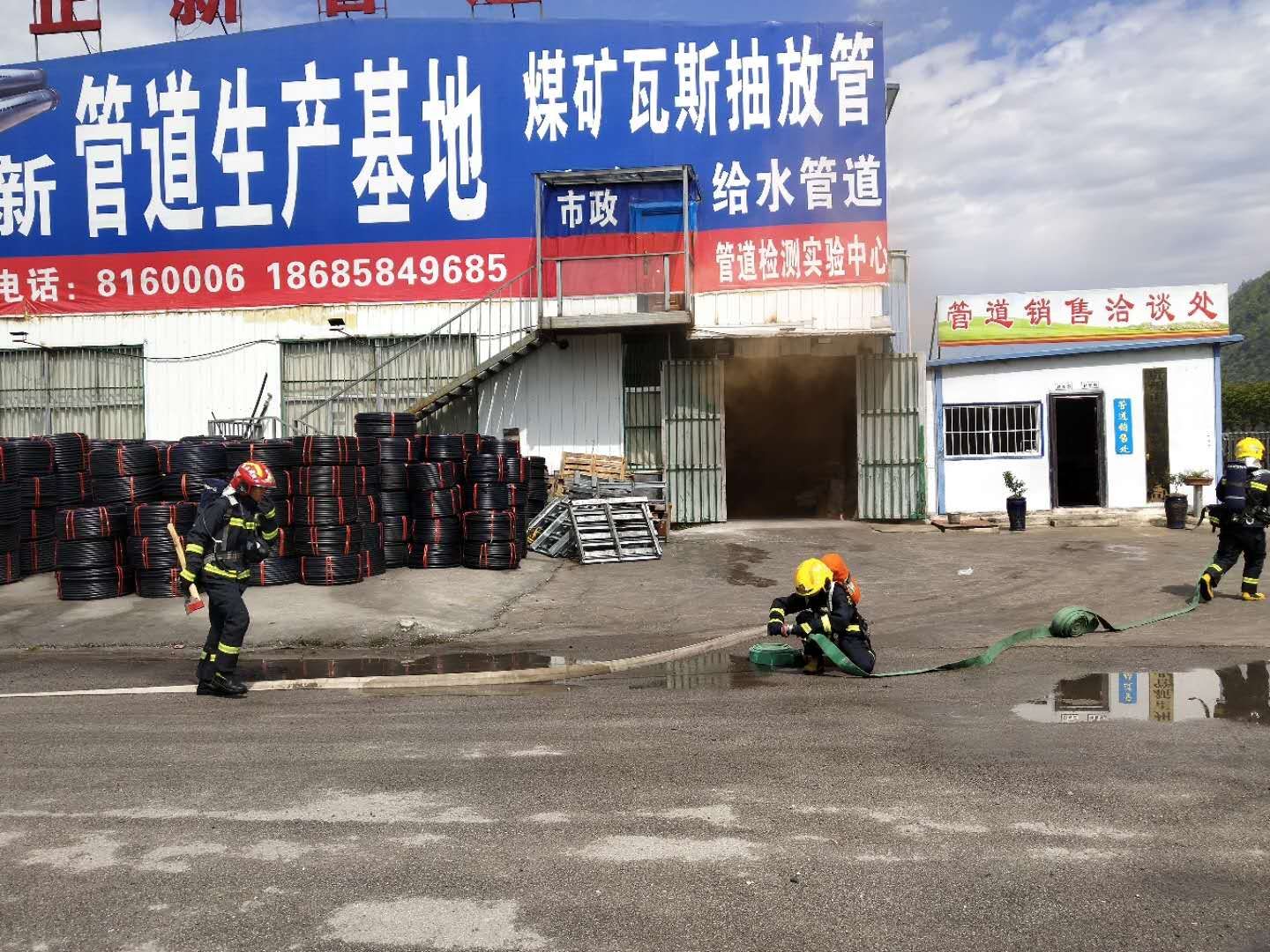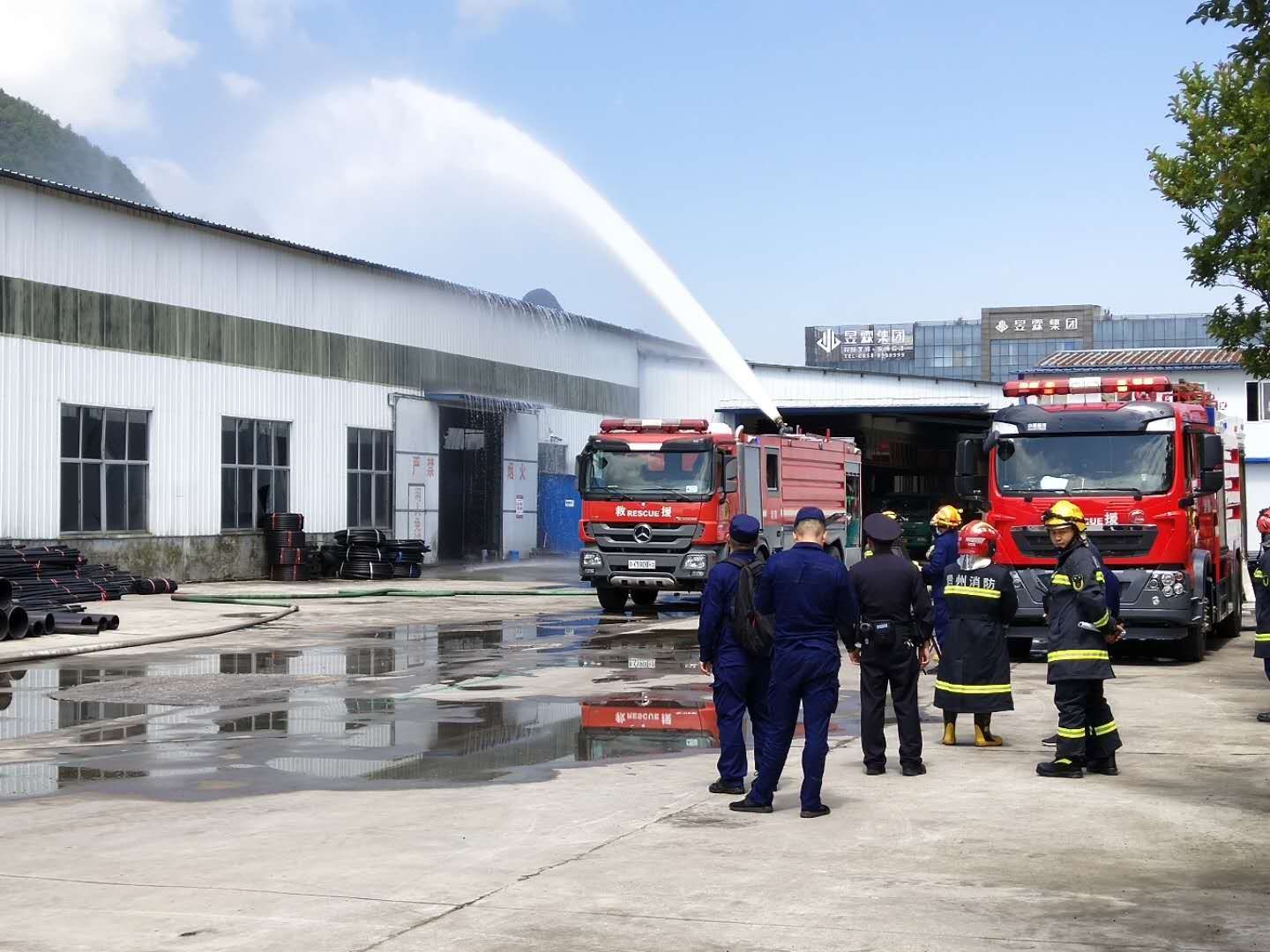 2020年5月15日,六盘水市消防支队到我公司贵州正新管业有限公司进行消防演习